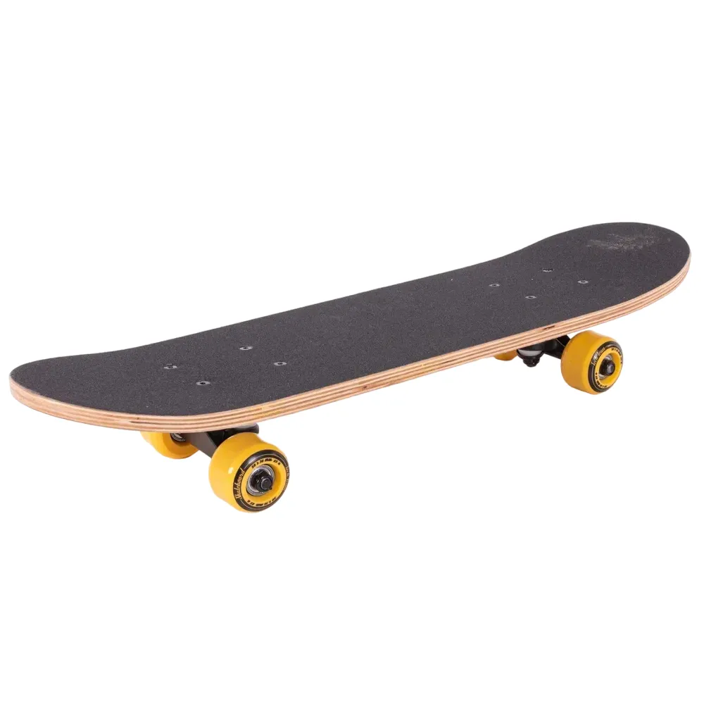 Скейтборд Tech Team Profi 2024 желтый - это смелый выбор для тех, кто ценит качество и стиль. С этим скейтбордом вы заметите, как город оживает под колесами из полиуретана размером 50x36 мм, обеспечивающих оптимальную жесткость 85А. Дека из 9 слоев прочного китайского клена гарантируют устойчивость и долговечность, а ее размеры 24”х6” обеспечивают максимальный комфорт при катании. Верхняя часть покрыта чёрной шкуркой 80AB для непревзойденного сцепления, а нижняя часть украшена эксклюзивным принтом в жёлтых тонах, вдохновленным винтажными наклейками. Скейтборд оснащен подшипниками ABEC 5 для плавного и быстрого движения, а двойной концевой загиб Деки (Double Kick) позволяет выполнять трюки с легкостью. Это не просто скейтборд, это способ выразить себя.