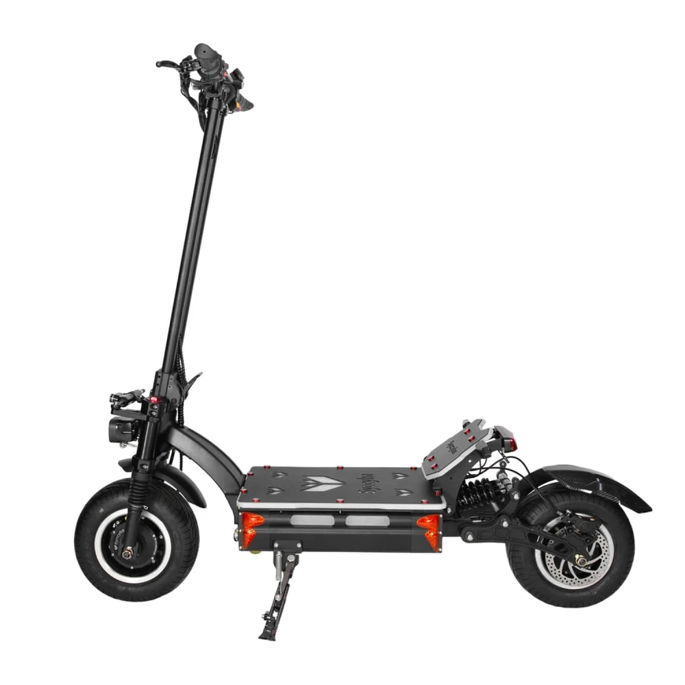Электросамокат Syccyba T1000 — полноприводный внедорожник с пиковой мощностью 11000 Вт, скоростью до 110 км/ч, пробегом до 100 км и нагрузкой до 200 кг, предназначенный для экстремальной езды по городу и бездорожью.​