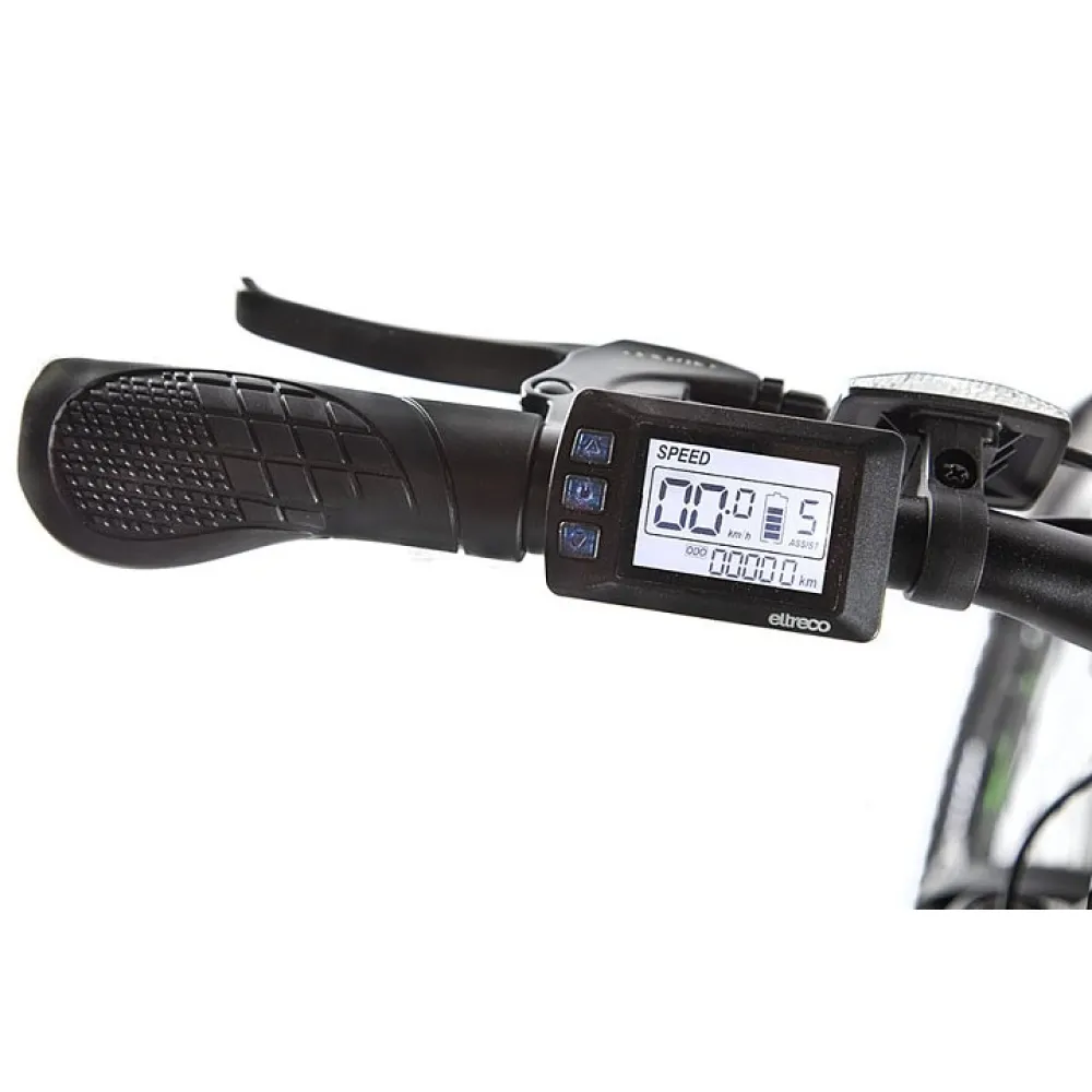 LCD-дисплей с информацией о скорости, заряде и пробеге, уровень мощности ассистента