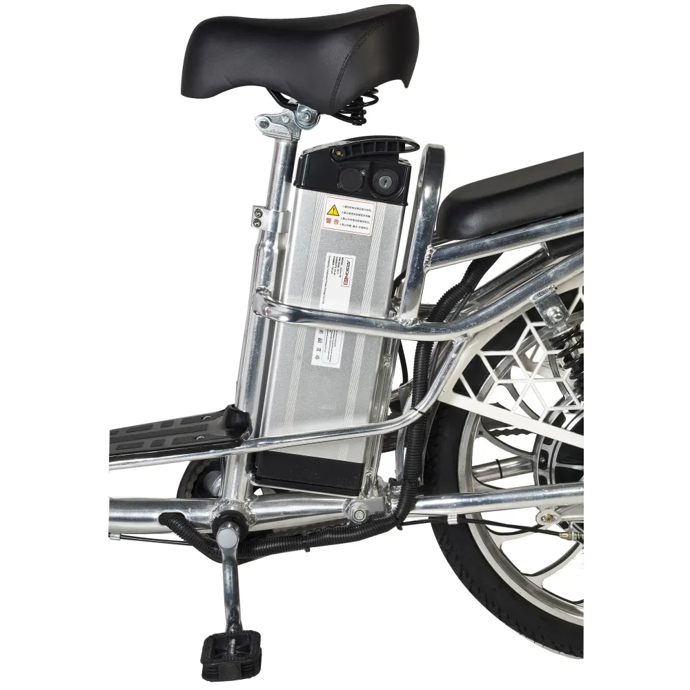 Съемная аккумуляторная батарея надежно спрятана под седельным штырем, чтобы при перевозке людей или доставке грузов минимизировать контакт.