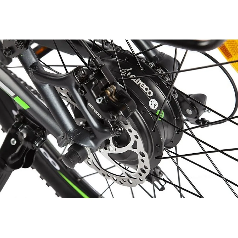 Модель представлена классическими формами. При весе 21 кг грузоподъемность составляет 110 кг. Надежность и качественность элементов позволяет пользоваться техникой в условиях горной местности. Безопасность велогибрида обеспечена качественной тормозной системой, удобный сиденьем, амортизаторами.