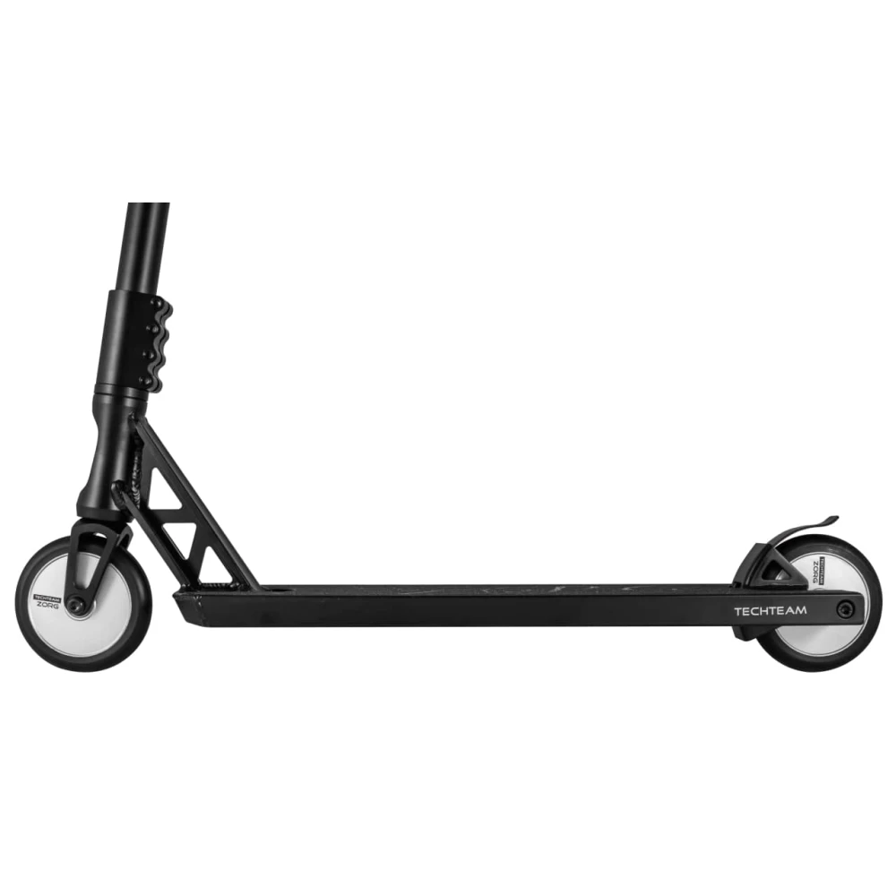 Трюковый самокат TECH TEAM TT ZORG СЕРЕБРО. Модель от компании Tech Team. Самокат способен выдержать вес до 100 кг. Дека выполнена в форме короба из лёгкого высокотехнологичного алюминия, все скошенные углы заварены. В конструкции используют фрагменты для защиты пользователя от ненамеренного тормоза при выполнении какого либо трюка что немаловажно при обеспечении безопасности. Т-образный руль так же обладает усилением для перепадов нагрузки.
